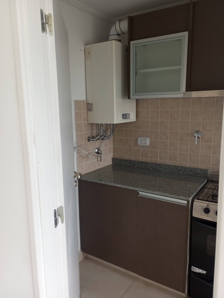 Cocina, living comedor amplio y muy luminoso, baño, 1 hab con placard, y balcon. Bajo mesada y alacena de primera linea. Calefacción por radiadores (caldera dual). Portero visor a color. Acceso al edificio x tarjeta magnética. No se aceptan mascotas. Se alquila solamente a persona sola o pareja sin hijos.-